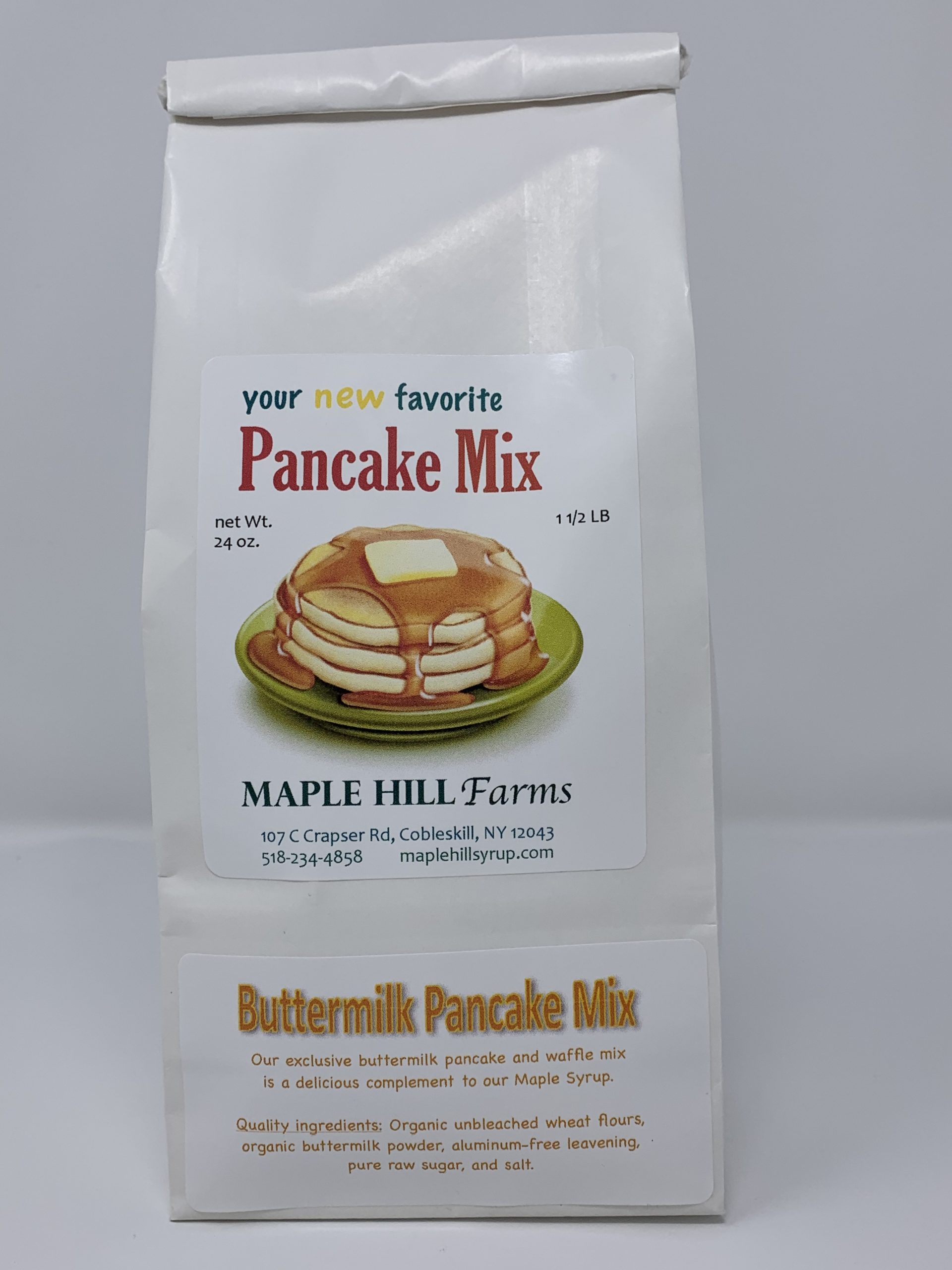 Our exclusive buttermilk pancake and waffle mix is a delicious complement to our Maple Syrup. Quality Ingredients: Organic unbleached wheat flours, organic buttermilk, powder, aluminum-free leavening, pure raw sugar, and salt.